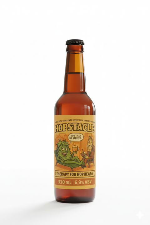 Hopstacle is a crisp West Coast IPA built around clarity, bitterness, and hop-driven precision - brewed in the Netherlands with zero interest in being “soft and pillowy.” This beer is intentionally dry, clean, and sharply defined, letting the hops do the talking (loudly).